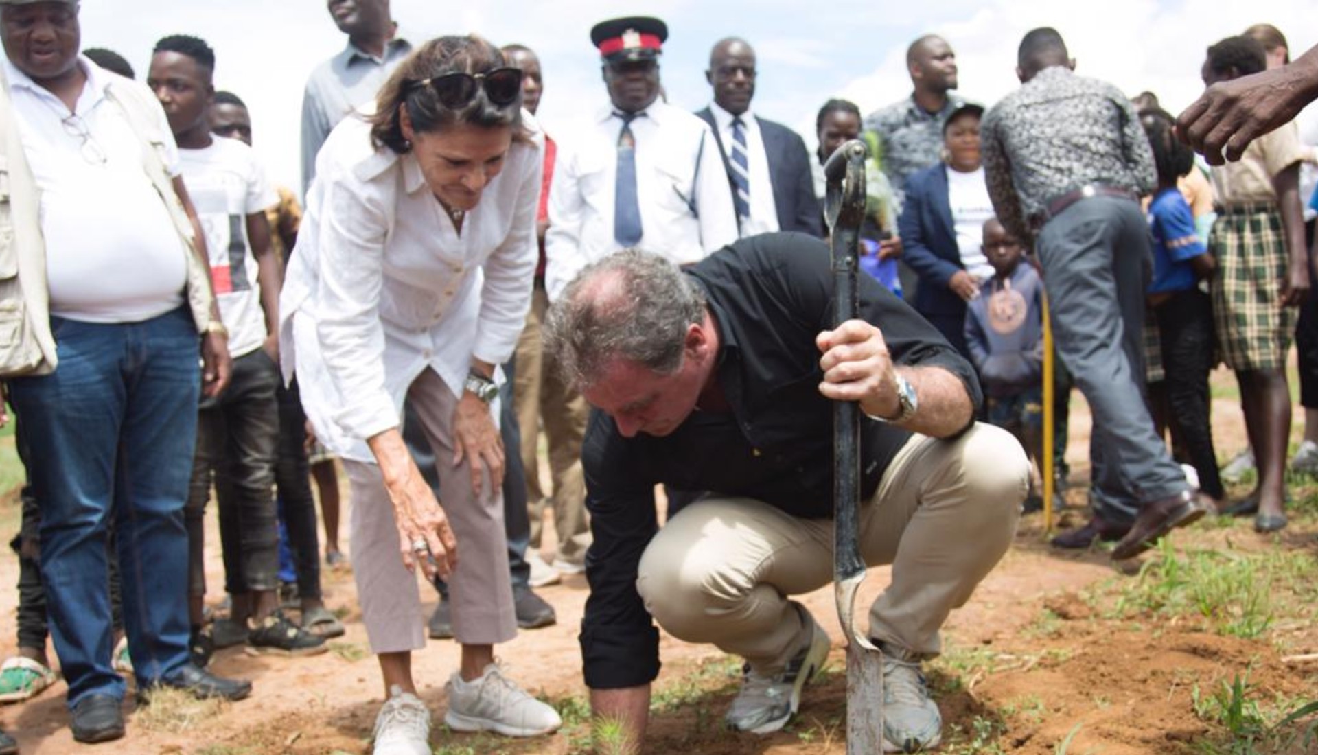 The Ackermans planted a tree at one of the schools they support.